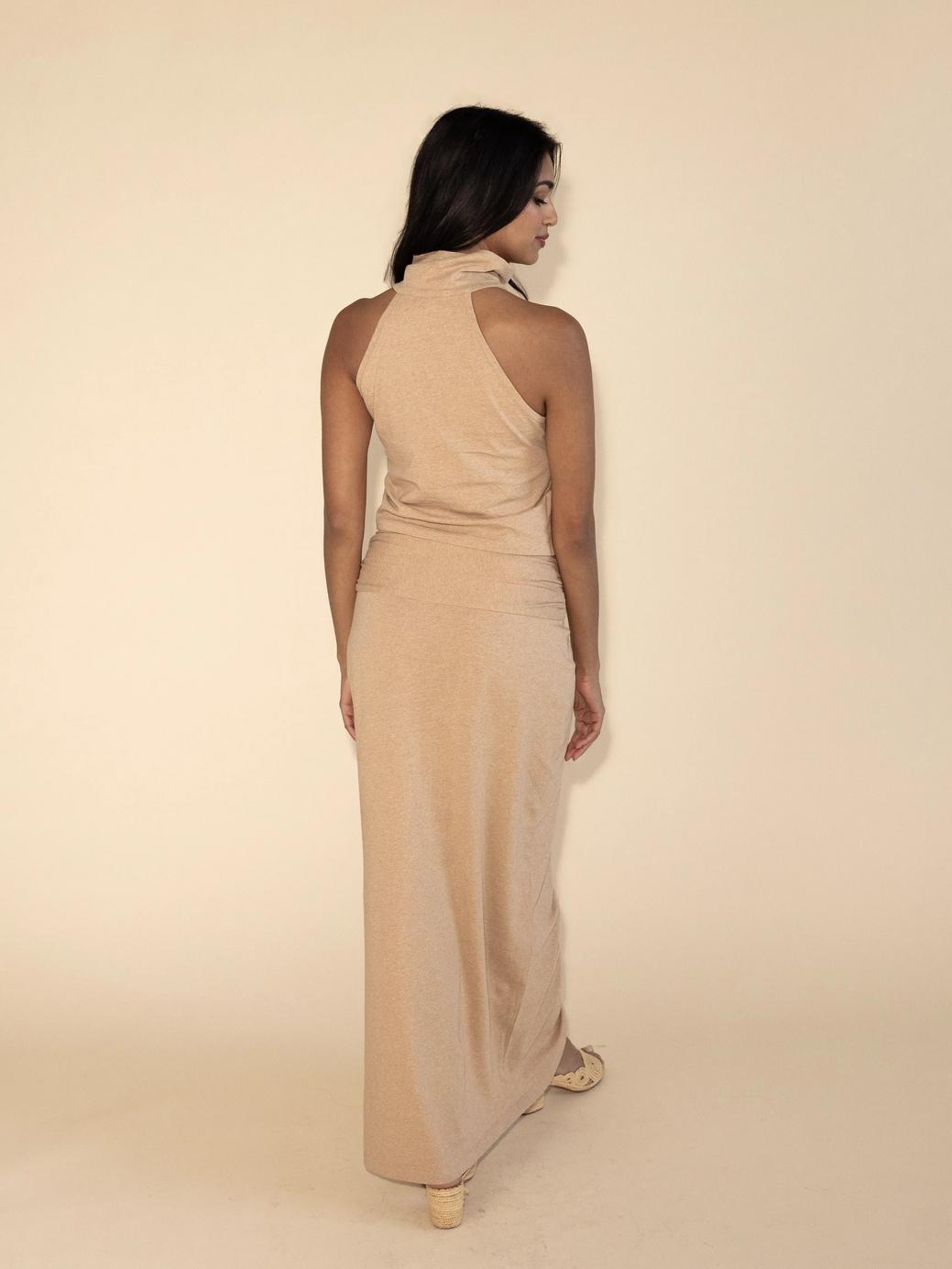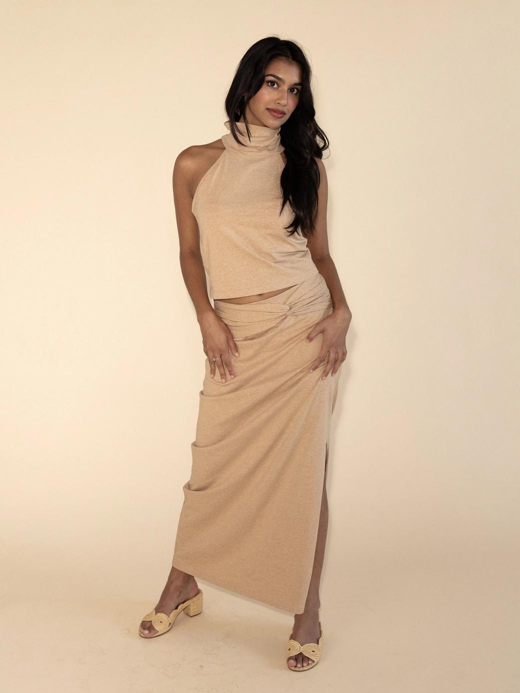 The Anya Tank brings a comfortable elegance to your fit. Elongate your figure with this unique piece that features a structured neckline to frame your face in a soft honey fabric glow.