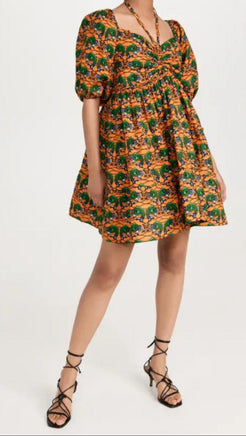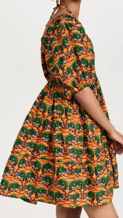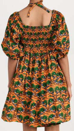 Unapologetically bold in print with a floaty and feminine silhouette, the Multi Ara Dress is our latest obsession. Vibrant, comfortable, and functional all in one, this mini features a sweetheart neckline with a tie that can be worn in a bow at the chest or around the neck like a halter, short puff sleeves, and a tiered A-line skirt. Cut from cool cotton, this is the perfect style to dress up with espadrilles and statement earrings for a cocktail party, or dress down with sandals for sunny brunches! Sweetheart neckline Ties at neckline Style neckline ties two ways: tied in a bow at the chest or around the neck like a halter Short puff sleeves Elasticated cuffs Elasticated empire waist Smocked back panel Side seam pockets Tiered skirt Mini length Material: 100% Cotton Care: Hand or machine wash in cold water. Do not bleach. Tumble dry low. Fit: If between sizes, size down As with all our products, every purchase allows us to continue to further our mission of supporting our Artisans with Jobs and economic empowerment. Pattern placement might vary from pictured.