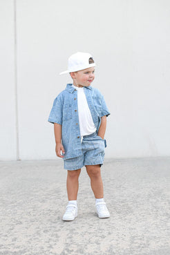 The Chambray Button Up is a versatile + chill shirt that can be worn open over a classic tee for a breezy look, or buttoned up for a more formal fit.