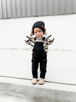 Our top selling distressed denim overalls are a must-have for the little trendsetter in your life. Available in light wash and black wash, these overalls combine a modern, edgy look with the classic denim feel. Perfect for your fall adventures and pumpkin patch outings. Material + Wash