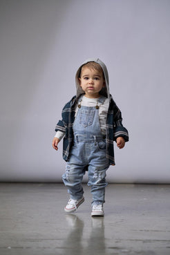Our top selling distressed denim overalls are a must-have for the little trendsetter in your life. These overalls combine a modern, edgy look with the classic denim feel. Perfect for your fall adventures and pumpkin patch outings. Material + Wash