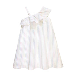 A dramatic one shoulder ruffle in our soft linen and organic cotton blend make this fun dress a pretty choice for family photos, parties, and playtime alike. Features an asymmetrical ruffle at the neckline, spaghetti strap on one shoulder, a full lining, and a side zipper for easy dressing. Get ready to twirl!