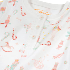 Step into the enchanting world of the Nutcracker ballet with our "Clara and the Sugar Plum Fairy Baby Onesie & Hat." These pyjamas feature a captivating hand-drawn design that brings beloved characters to life. Crafted from ultra-soft Peruvian Pima cotton, this set ensures a cozy and magical night's sleep. Discover the joy of ballet season with style and comfort, one pirouette at a time.