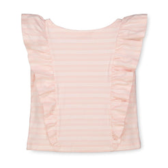 With pretty ruffles in a soft and comfortable organic cotton knit fabric, this is the top your girl will want to wear with everything all spring and summer long. Features soft ruffle details that flow beautifully from front to back, all in an easy pull on silhouette for your girl.