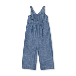 Our adorable ruffle neck jumpsuit in soft organic cotton will be your girl's go-to choice for spring days and summer vacations. Features a ruffle detail along the neckline, smocking in the back bodice for a comfortable pull-on fit, side pockets, and comfy wide legs. Get the camera ready with this light and breezy wardrobe staple!