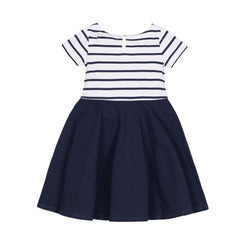 The perfect dress for any occasion! Our French-inspired skater dress is cut in soft organic cotton jersey in an easy pull-on classic style. Features a grosgrain ribbon sash and bow at the center waist for that extra feminine touch.