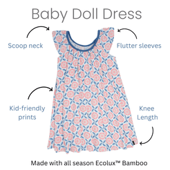 Your little one will look ready for playtime (or a special occasion) in this oh-so-comfy baby doll dress! With its tag-less design and lightweight fabric, they'll be free to move, explore, and wear all day, in relentless cuteness!