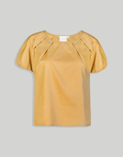 Easy to pair with jeans, trousers, or your favorite shorts; this Balloon Sleeve Top in mustard is an eco-friendly way to start your day.
