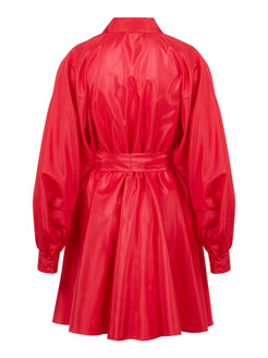 Mini dress with a front sash, accessory details, button closure, long sleeves