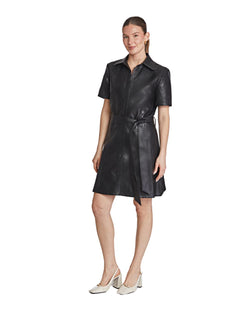 Get ready to turn heads with the Berk Dress! This dress features a Button front placket and is made from Vegan Leathe...