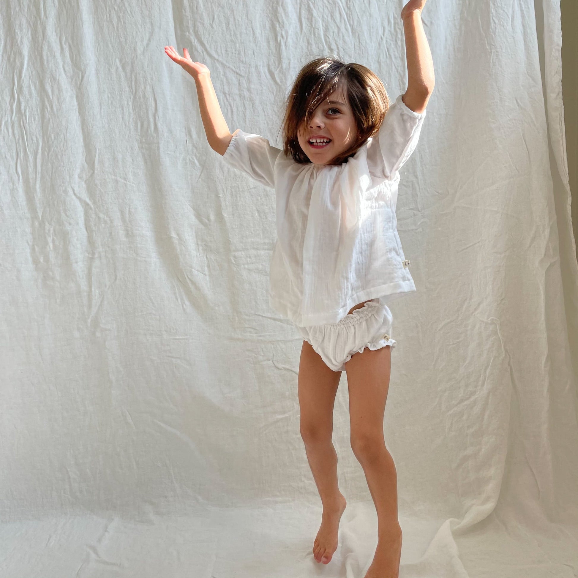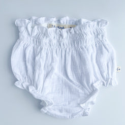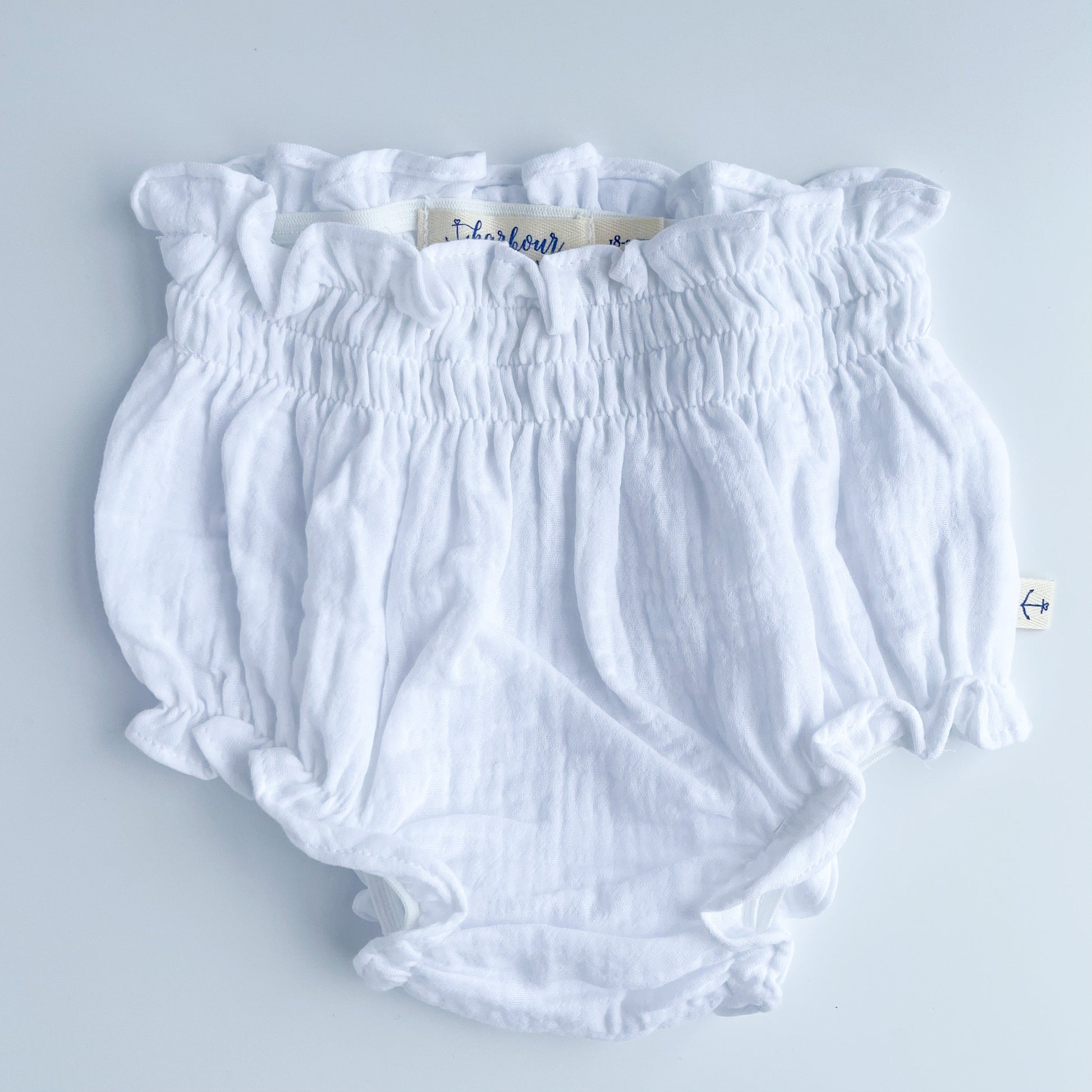Part of the ORGANIC COLLECTION, our signature bloomies, sewn up in a beautifully textured and outrageously soft organic cotton gauze. Designed for long wear and comfort, bloomies are a must have item! Perfect under dresses. We pair ours with a gauzy tunic or flutter sleeve top. Great choice for a newborn gift. 100% organic cotton
