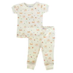 Here are the deets: - Super soft and comfortable material made of 97% organic cotton and 3% spandex - Referred to by moms as "The softest jammies, EVER" - Designed by mom, artist, wonderful human Lottie Caiella - Pre-Shrunk to make laundry a breeze - Printed using eco-friendly water-based inks - Runs true to size - Ethically created from the ground up (dyed, grown, sewn and shipped)