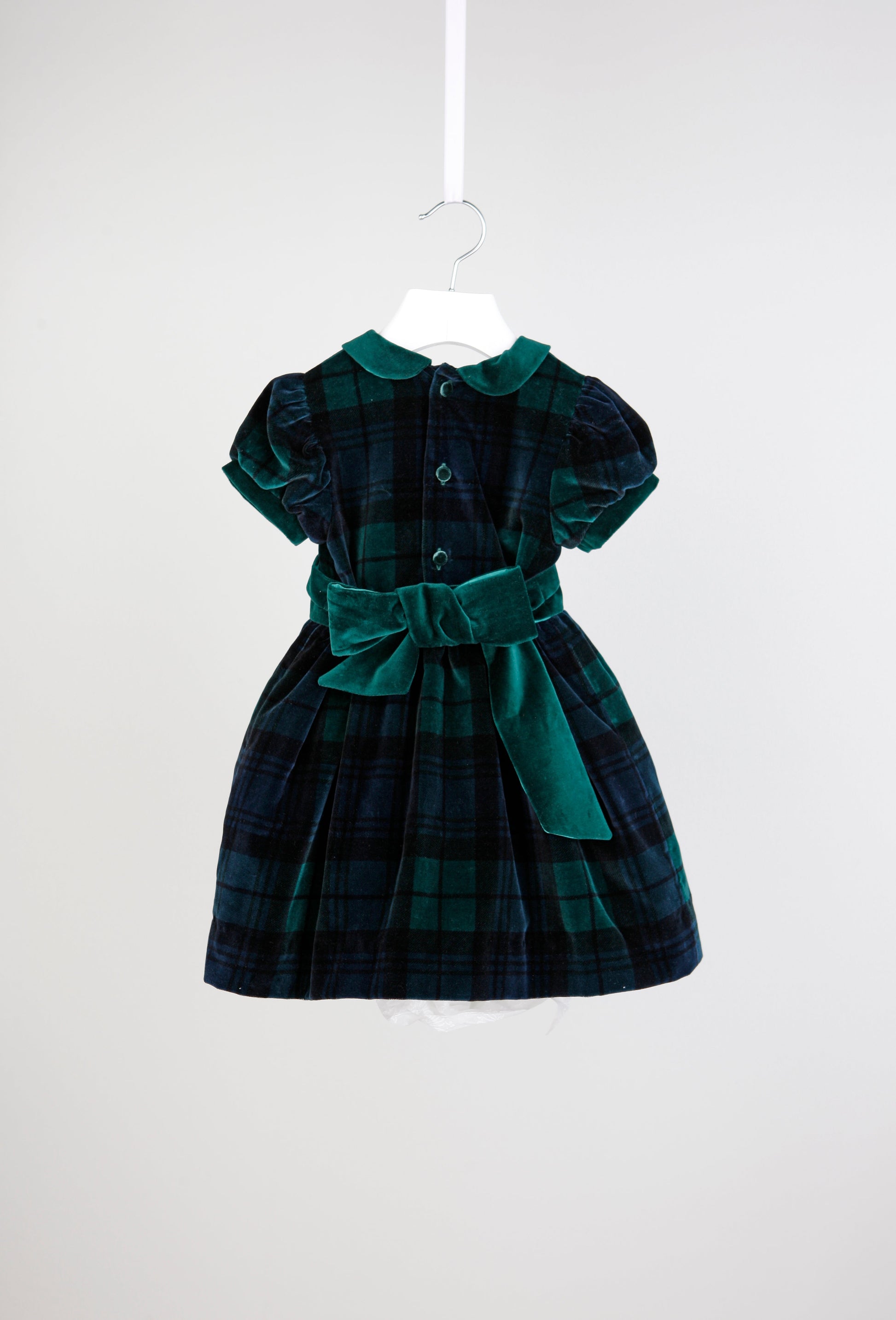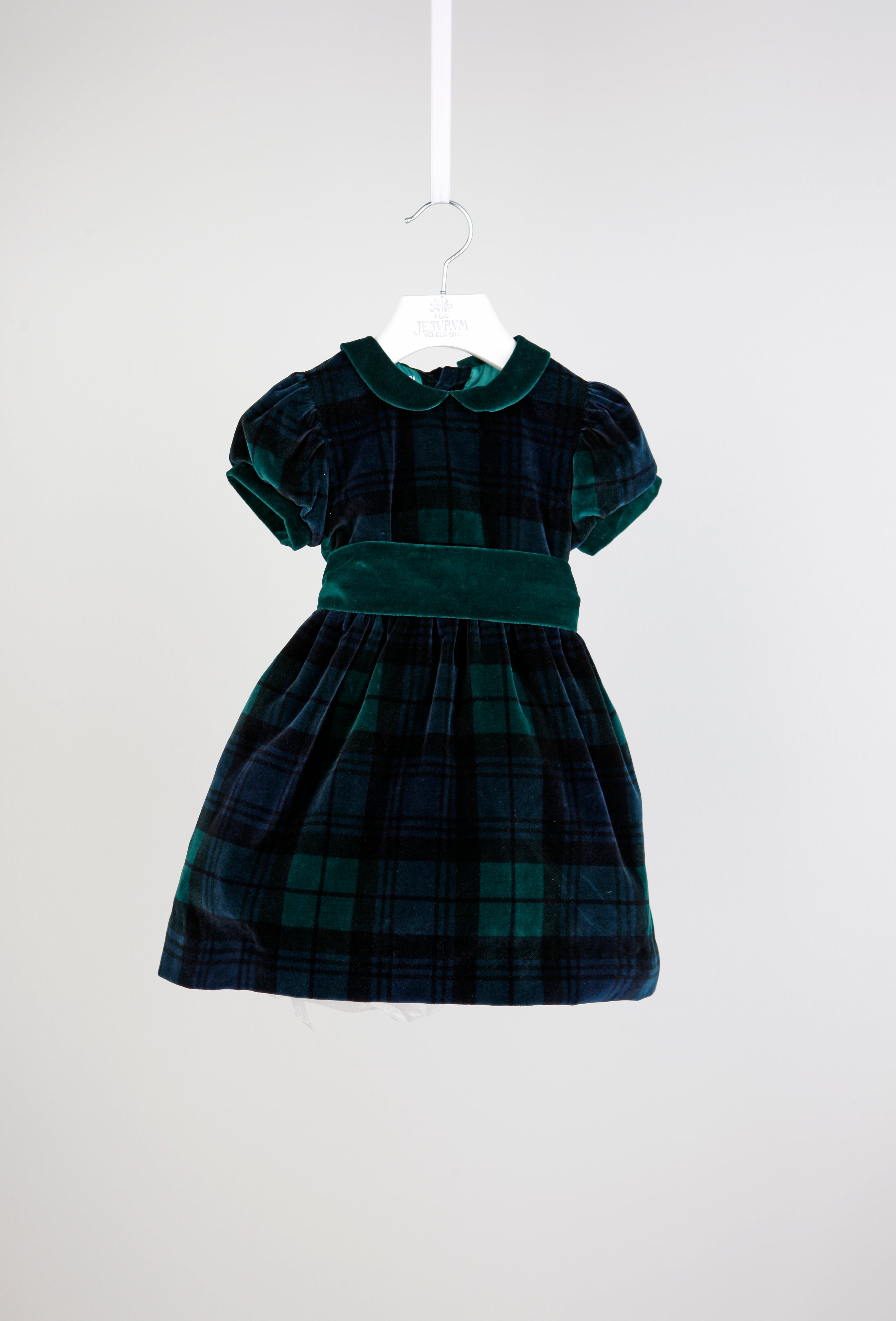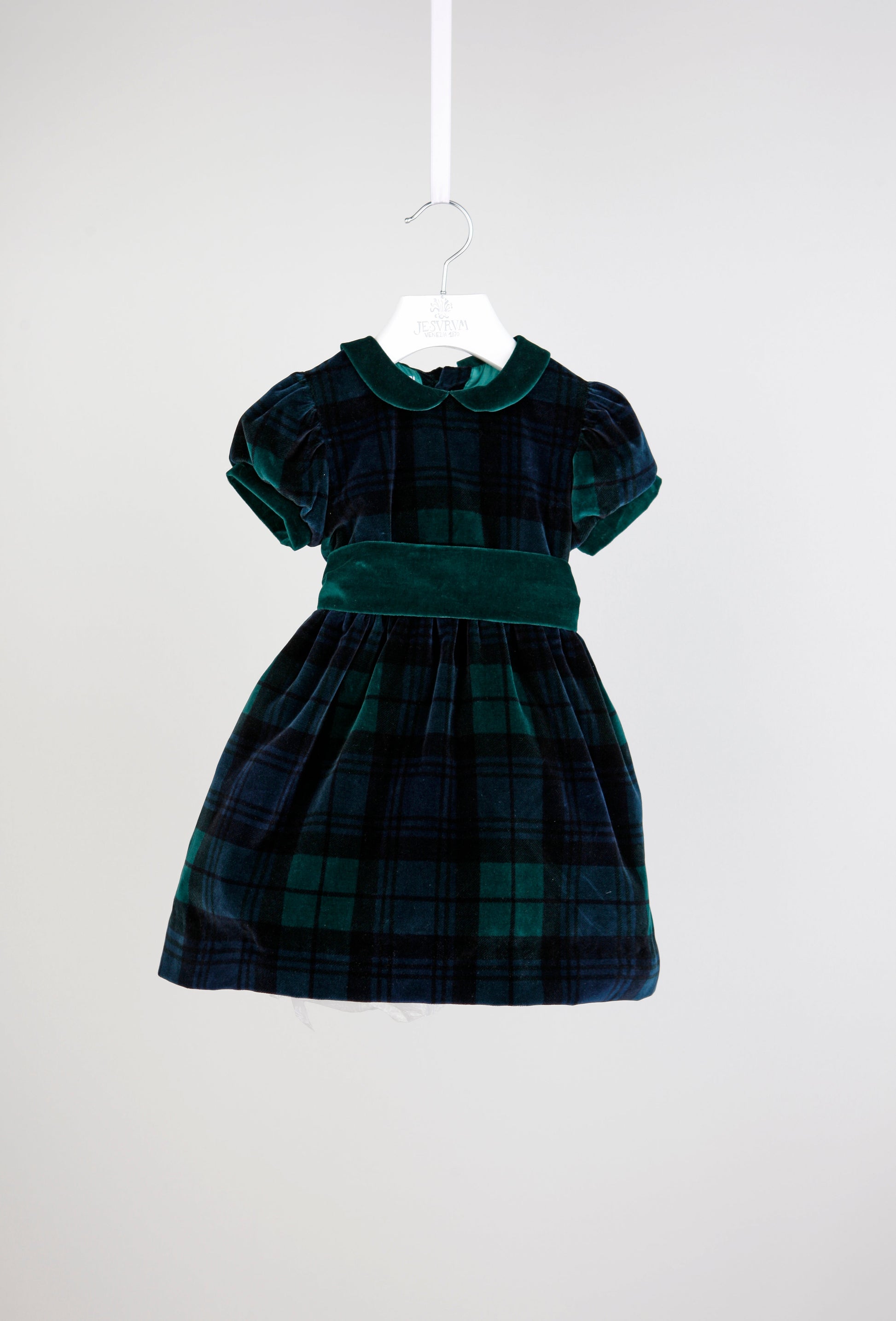 Cotton velvet tartan dress, for the holidays. 100% made in Italy