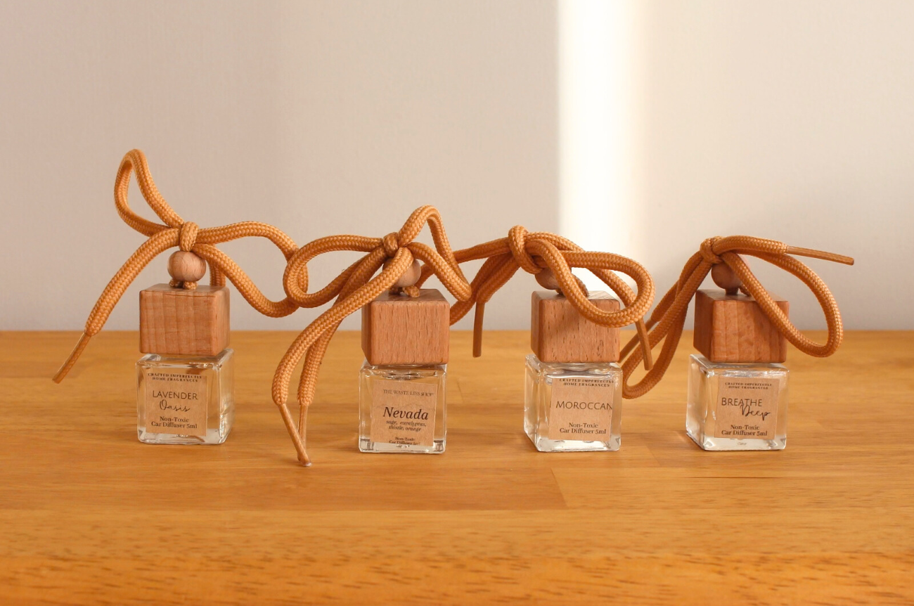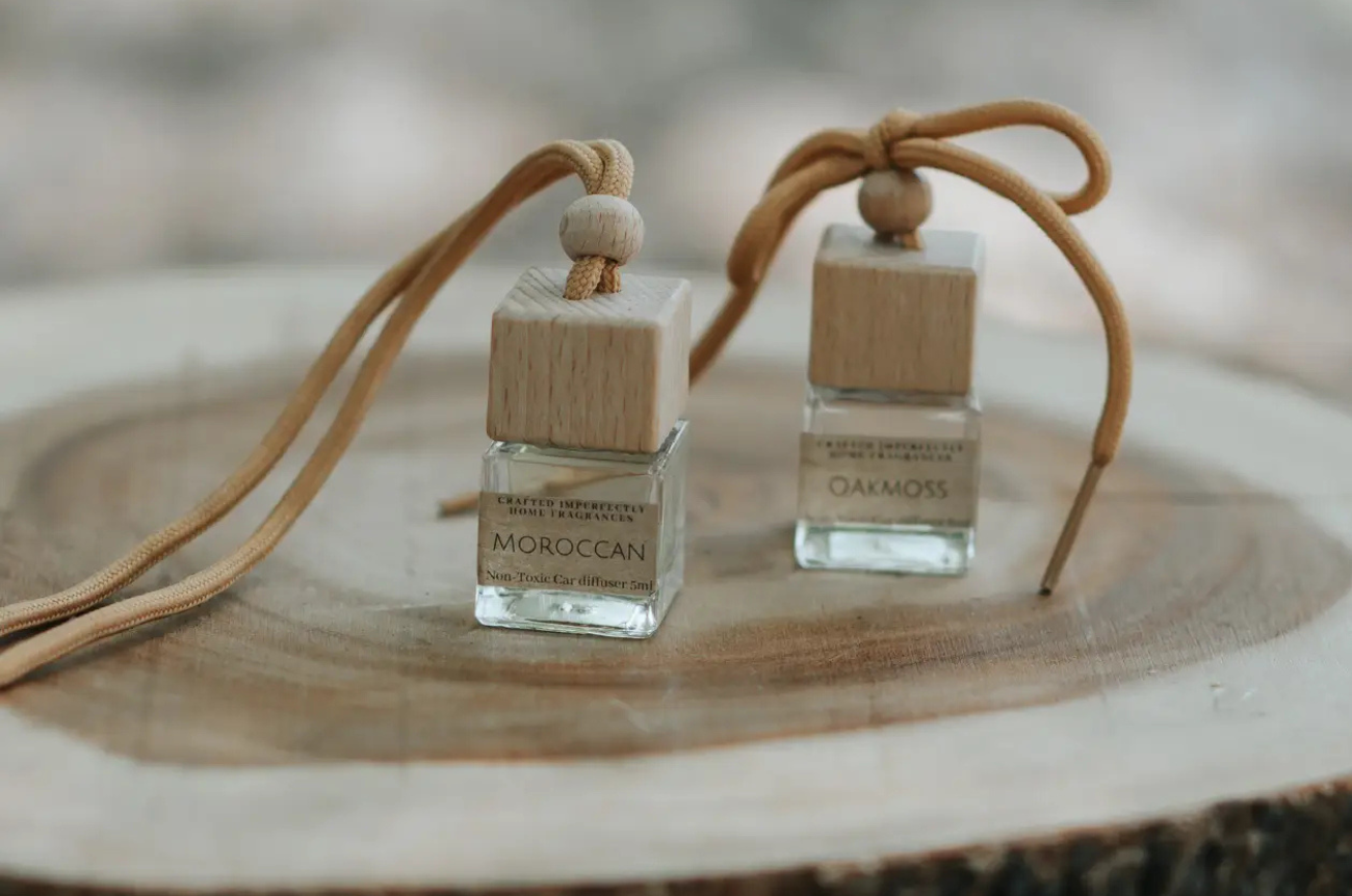 Keep you car fresh with Crafted Imperfectly's calming scent blends in portable diffusers. These car fresheners create an immersive atmosphere that soothes and refreshes.