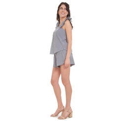 Made from one of our favorite light-weight cotton fabrics, Seersucker, the Caroline top features ruffled straps and t...
