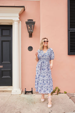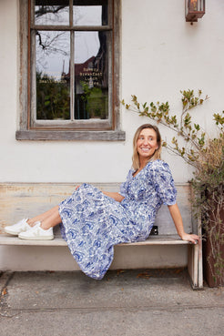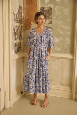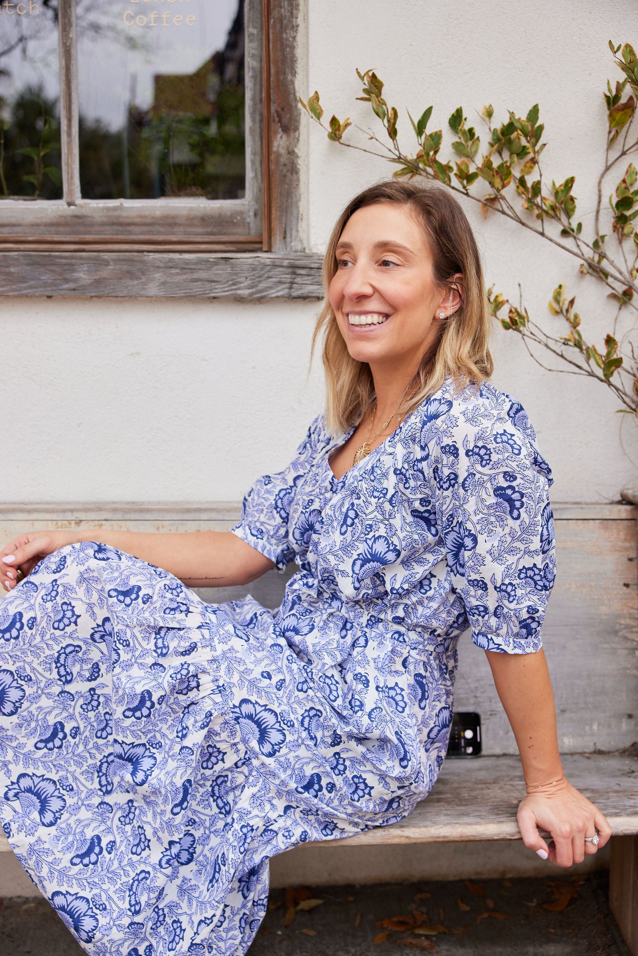 We’ve brought back the Cici as not only was it a sell-out style from last summer, it was also one of Julia’s favorites! She selected the beautiful blue and white dianthus block print and together we decided to make a tweak to the design by adding in a tier to give it something extra for this special collection.