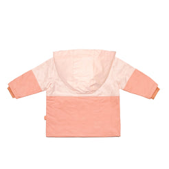 Let your little one explore their adventuring spirit and stay dry and stylish this season with the Colorblock Kid Raincoat! Comes in 2 colors, soft pink and terracoral. Wind-resistant and water-resistant. The ribbed cuff and insulated lining keep them warm and cozy, while the two functional pockets let them collect tiny treasures during their outdoor escapades. With snaps and a front zipper for easy closure, and an attached hood with lining for added protection. Made from 100% recycled polyester, by artisans in Portugal. For each purchase, 1% of the sale goes to the restoration of mother earth.