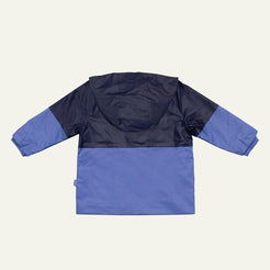 Let your little one explore their adventuring spirit and stay dry and stylish this season with the Colorblock Kid Raincoat! Comes in 2 colors, peri blue and navy. Wind-resistant and water-resistant. The ribbed cuff and insulated lining keep them warm and cozy, while the functional pocket let them collect tiny treasures during their outdoor escapades. With snaps and a front zipper for easy closure, and an attached hood with lining for added protection. The pocket is made with the flat edge. Made from 100% recycled polyester, by artisans in Portugal. For each purchase, 1% of the sale goes to the restoration of mother earth.