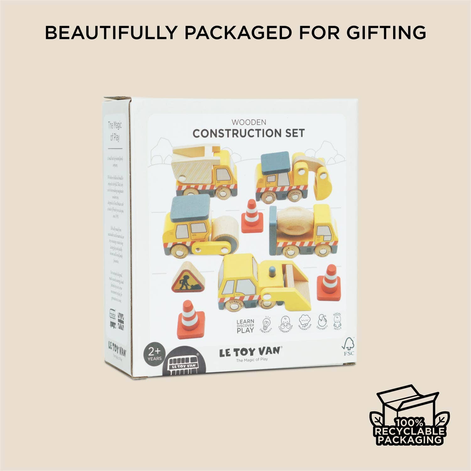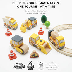 Inspire big imaginations with this beautifully crafted wooden construction vehicle set. Budding builders will delight in the 9-piece collection featuring a digger, cement mixer, dump truck, roller, front loader, road signs, and cones—each with movable parts for realistic play. Thoughtfully made from FSC®-certified wood and finished with non-toxic water-based paints, this heirloom-quality set is designed for endless, safe, and sustainable play.