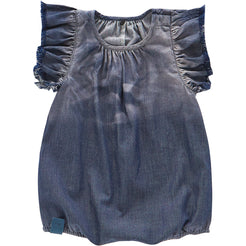 The coolest romper ever. It features bubble shape, fringed sleeve ruffles, dip-bleached finish and just perfect for t...