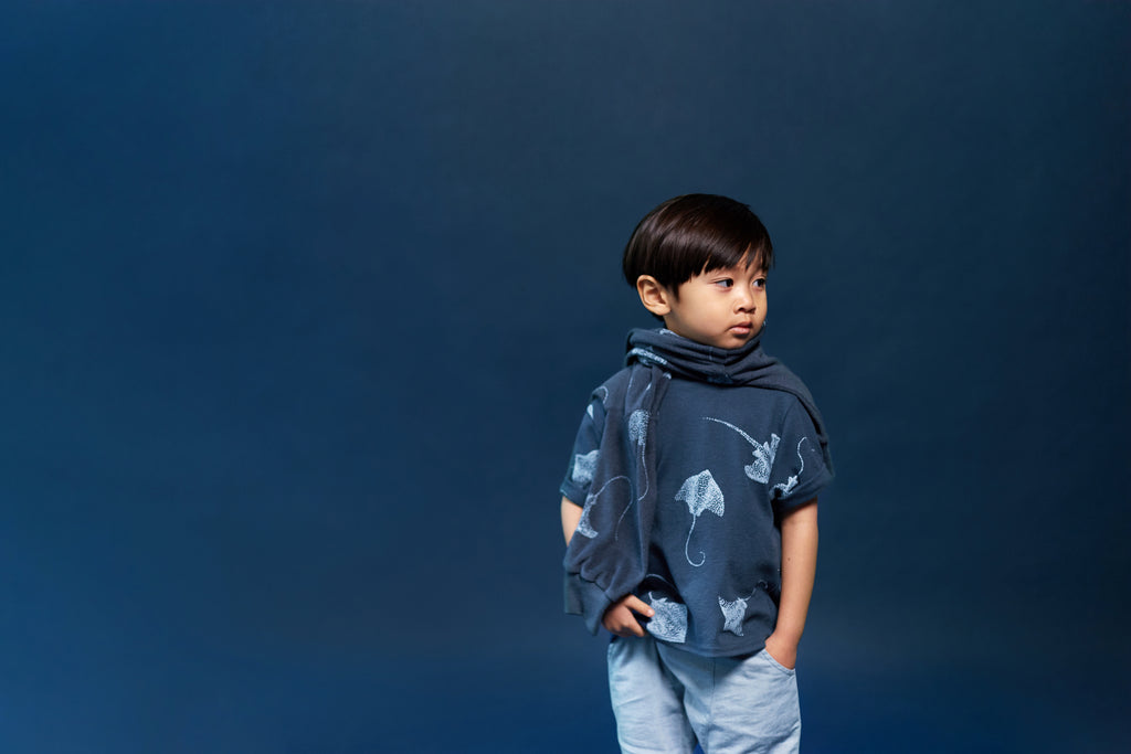 Dip-bleached finish Elasticized waist back Stitched rounded pockets Rolled up hem 100% cotton