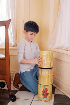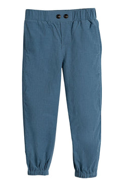 A super-soft baby cord in Medium Blue makes for a go-to pant of the season and beyond. We updated this favorite silhouette with two handsome buttons in place of the drawcord for a bit of a more tailored look this season, while still offering the always needed elastic waistband. Perfect with a tee for outdoor and indoor play alike or dressed up. Your boy will love this pant for their classic hue and practical pull-on style comfort.