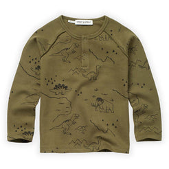 Time travel back to the age of dinosaurs with the Sproet & Sprout grandad sweatshirt in dinosaur print. This army...