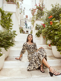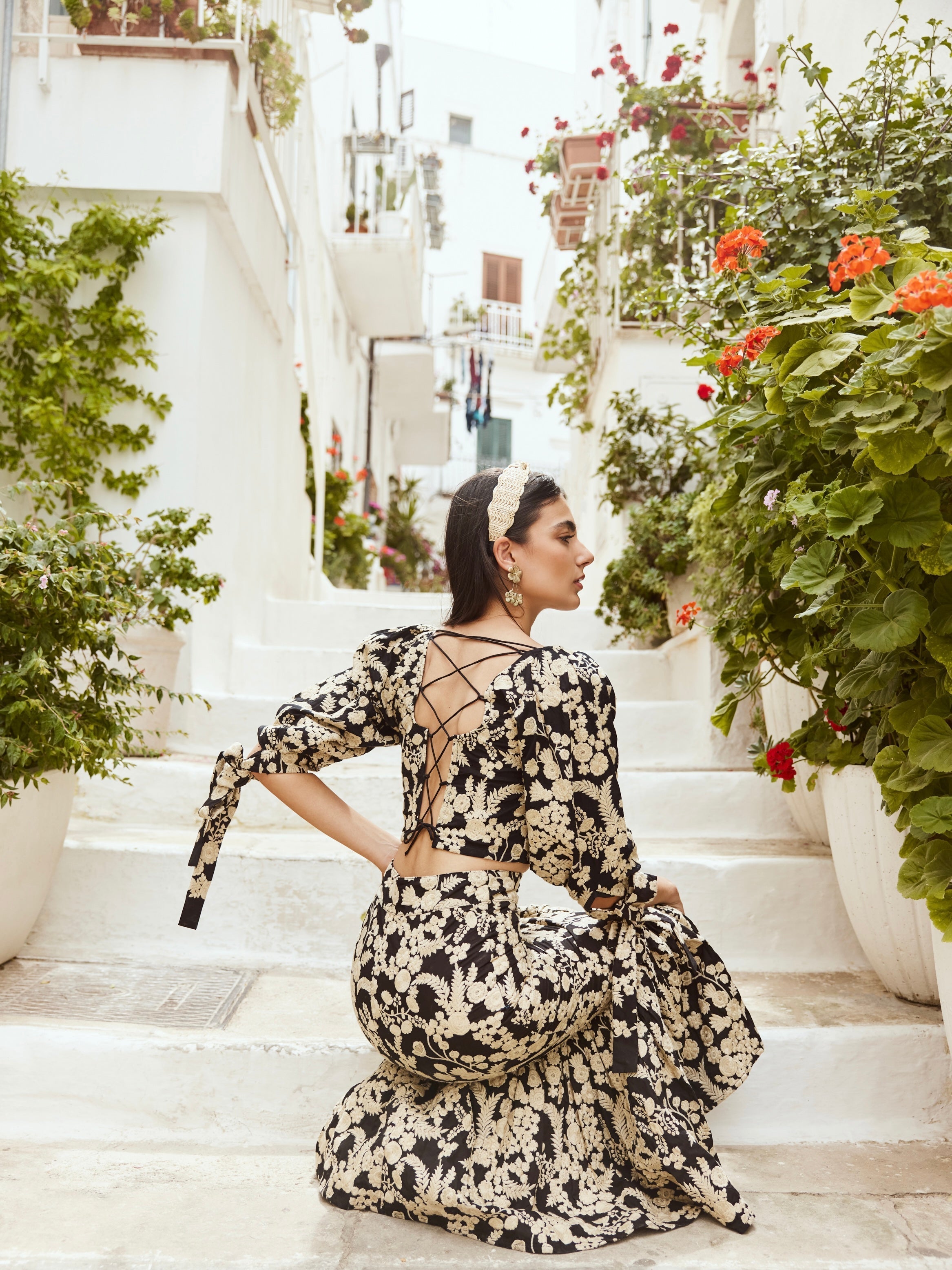 The Doris is an exquisite top all about the intricate embroidery. This slightly cropped blouse has dramatic puff sleeves that contrast beautifully with the more fitted bodice. This lovely blouse features a lace-up back as an added detail.