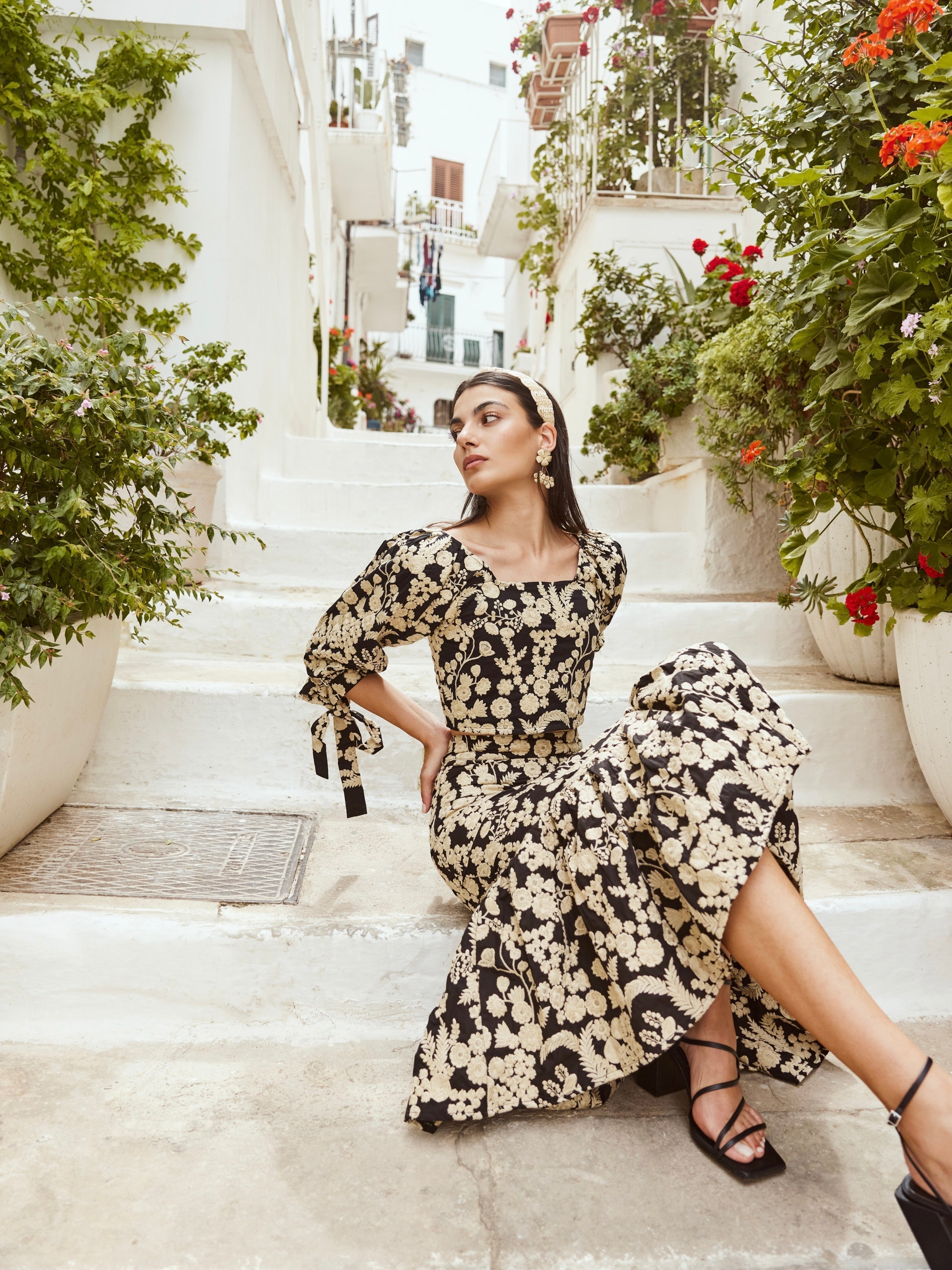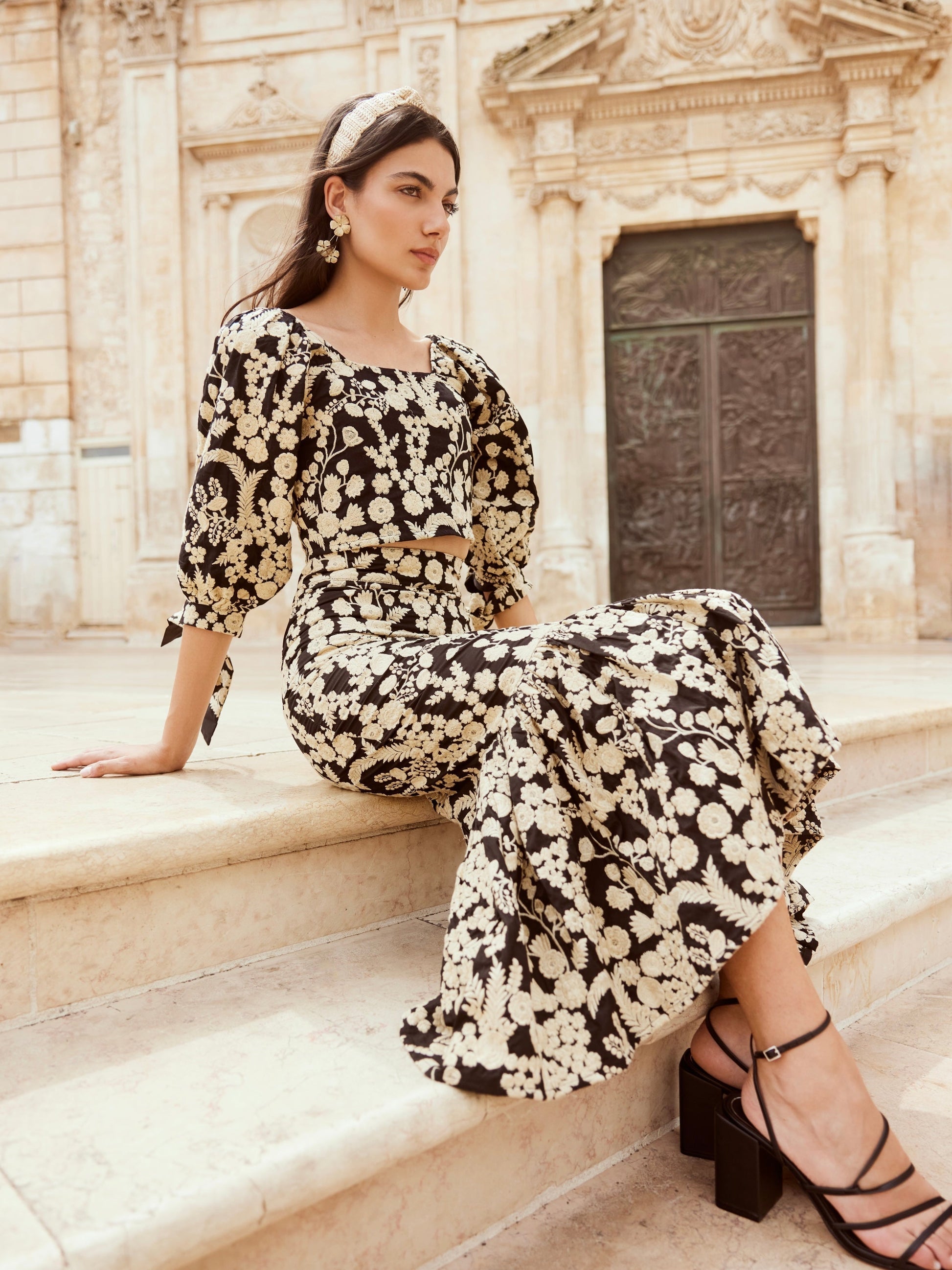 The Doris is an exquisite top all about the intricate embroidery. This slightly cropped blouse has dramatic puff slee...