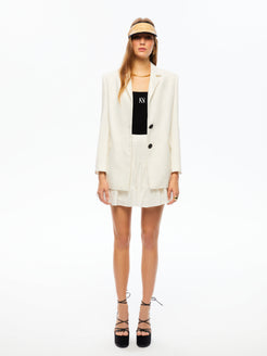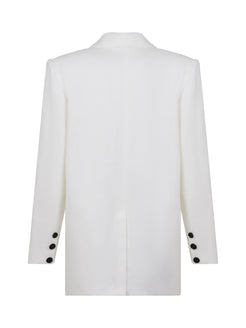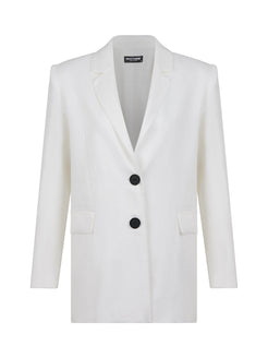 Double-breasted, long-sleeved, linen jacket with decorative pockets