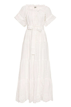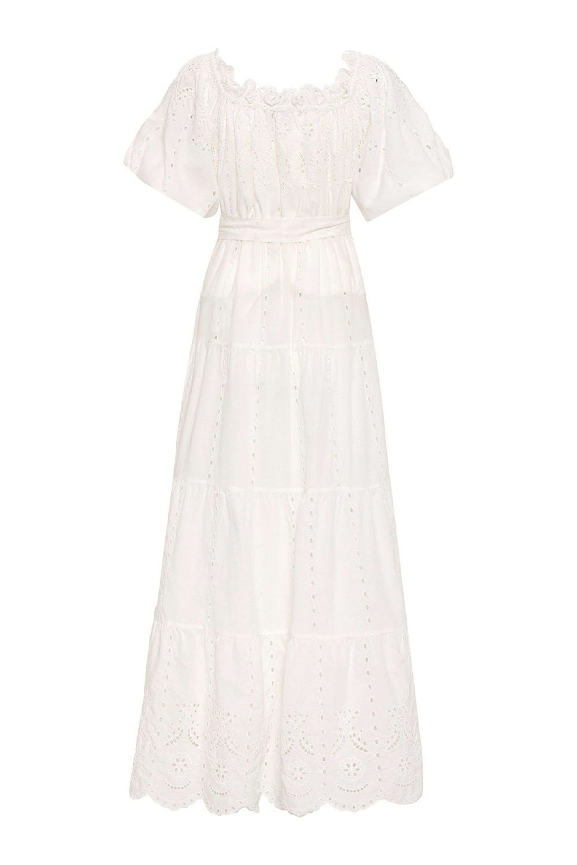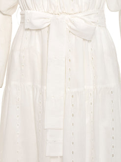Balloon sleeves, inner lining dress, elastic waist, embroidered long dress