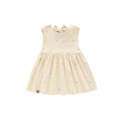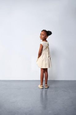 This simple yet beautiful dress is featuring a round neck with ties at the back and a super soft, brushed jersey fabric. Fit and flare silhouette with generously shirred skirt is perfect for a special event or family pictures but also comfortable enough for everyday adventures. Tiny whale sharks all-over print is our fave this season.
