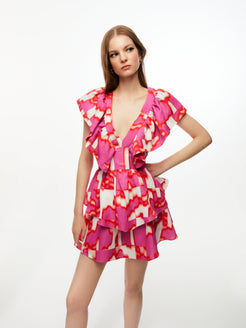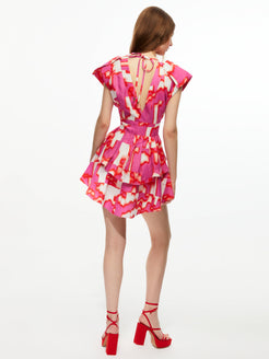 Long sleeve, lace-up detail, waist-fitting, zippered, flounce mini dress