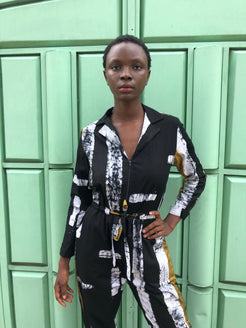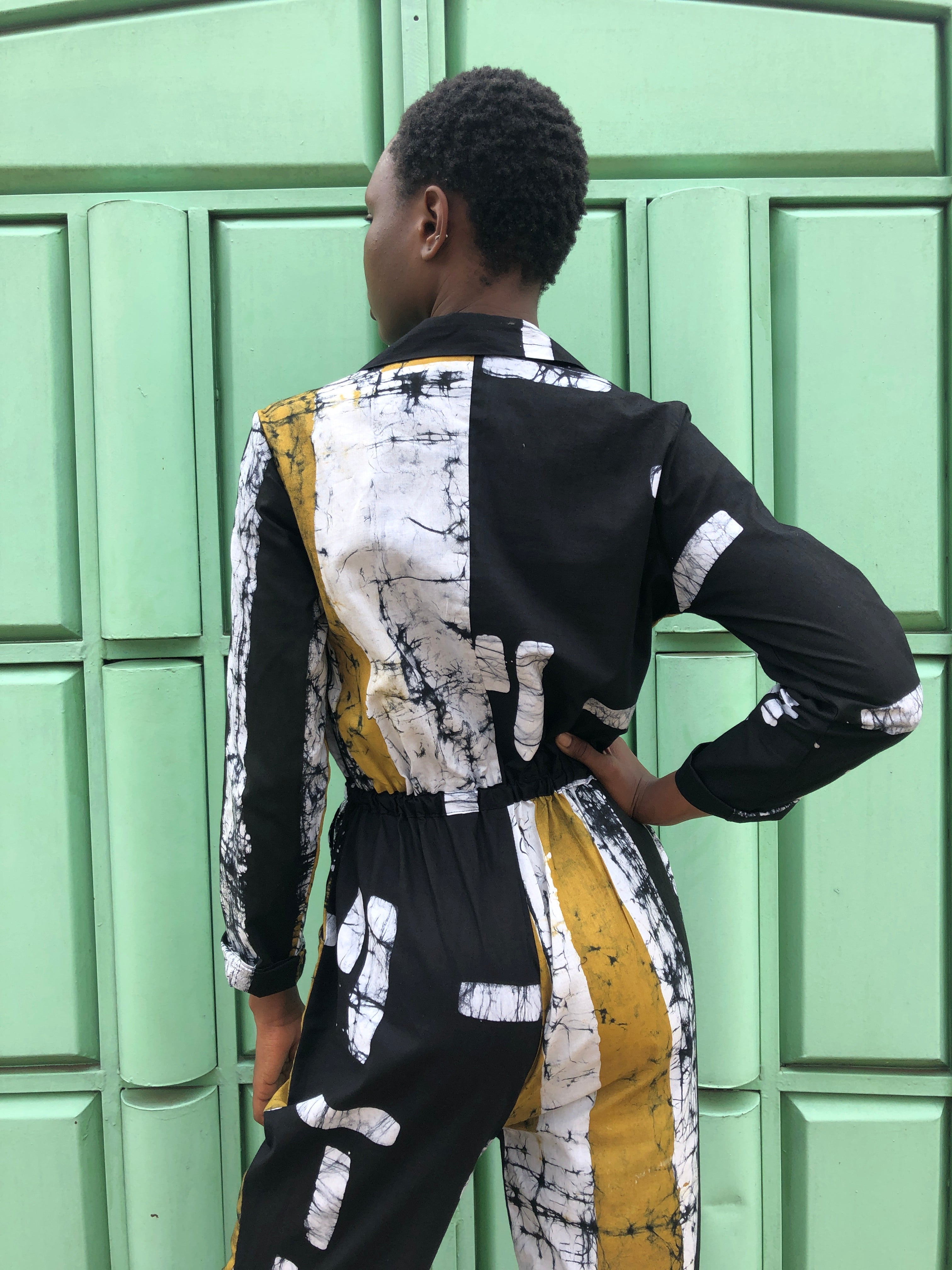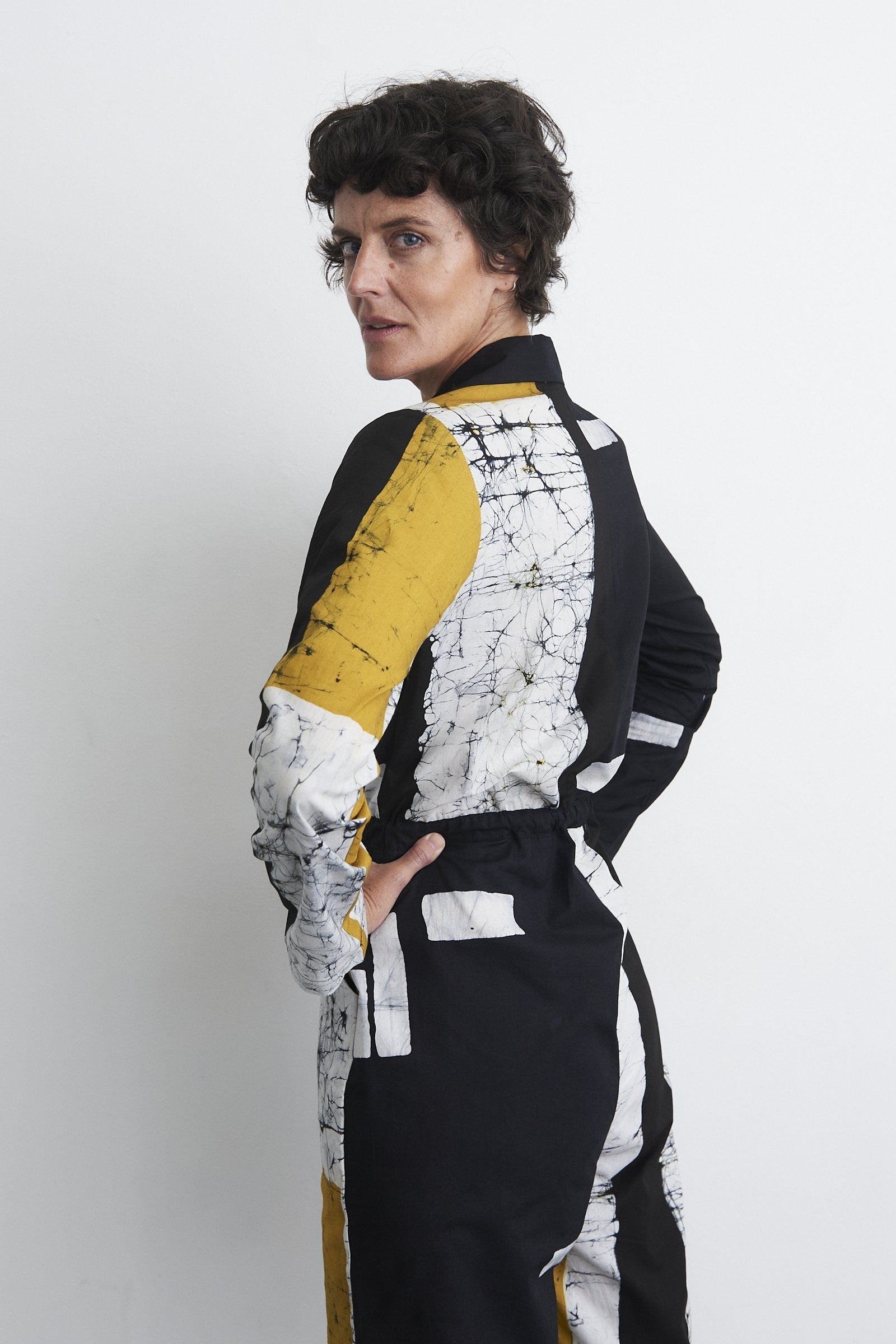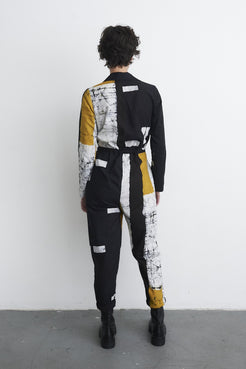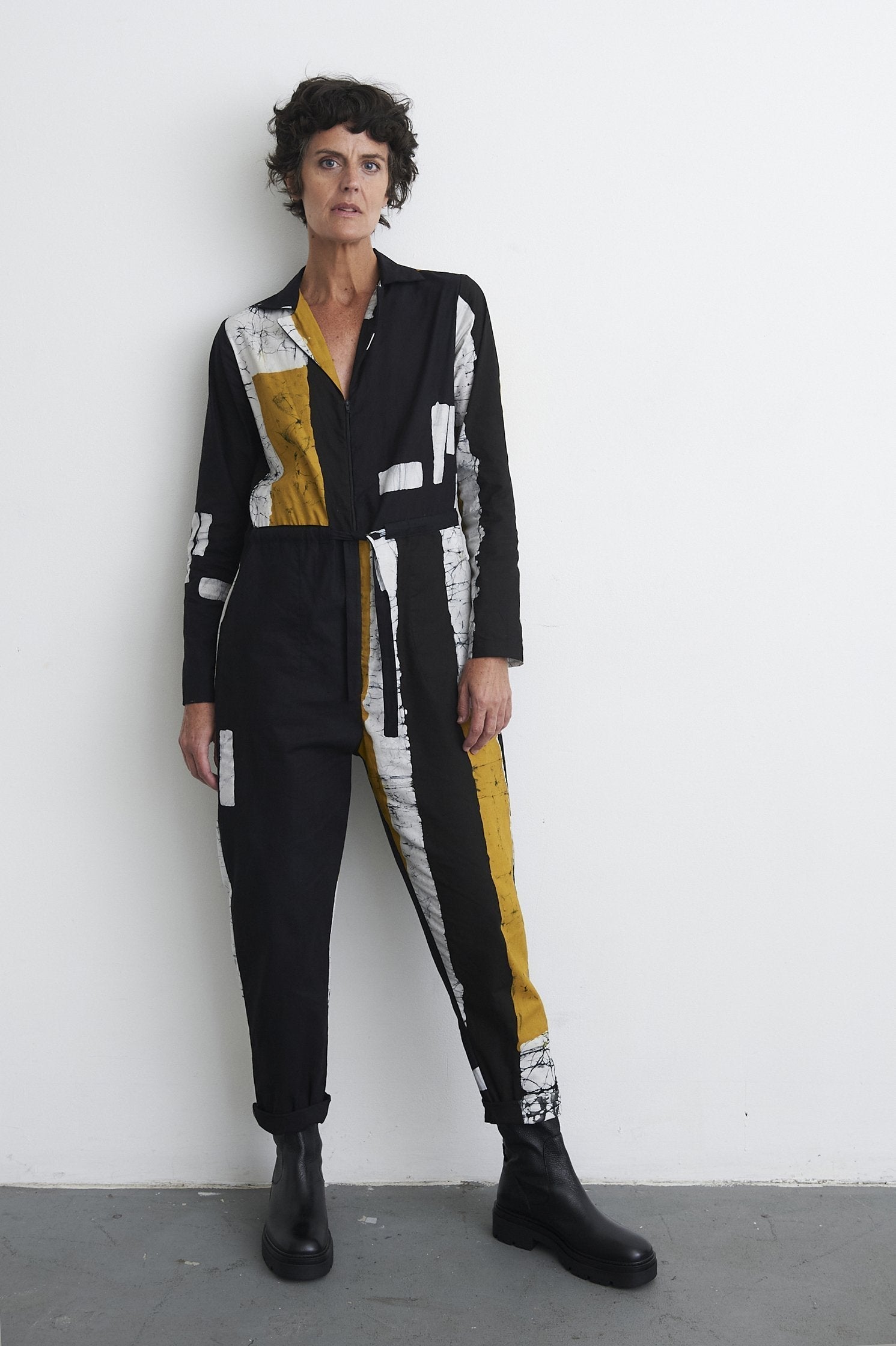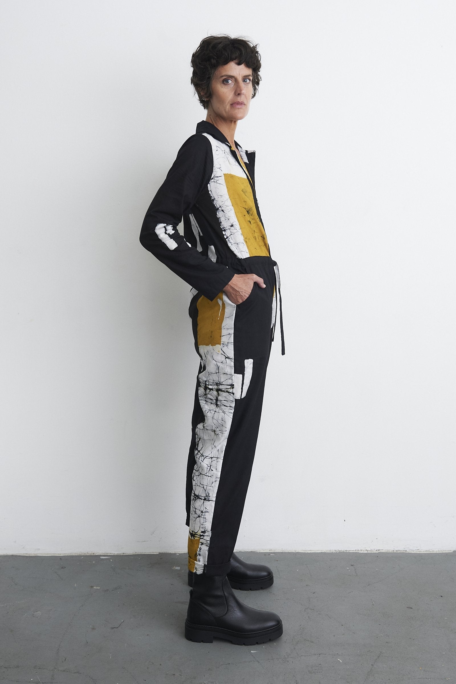 These midweight cotton flight suits have proven to be a hit over the last few years for us, across various seasons. The easy fit and drawstring waist make it a great canvas for our prints and a versatile styling piece. It truly looks great on all sizes. The Fuga features a front zipper, a spread collar, trouser pockets, and a drawstring waist. It has an easy fit through the torso, with slightly tapered sleeves and legs. An excellent transitional weather layer.