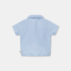 Rescues are brand new items with tags, sourced from aging collections and offered to you at a discount. Most overstock & retail returns in America are thrown away or kept in storage - by rerouting this inventory to Manymoons, with your help we are able to keep these products utilized and out of landfills. This organic gauze set comes but a button down shirt and Bermuda shorts. The shirt features a camp collar, a button-down placket, short sleeves, and a front patch pocket. The shorts have rectangular patch pockets and diagonal openings. Elasticized ribbed waistband.