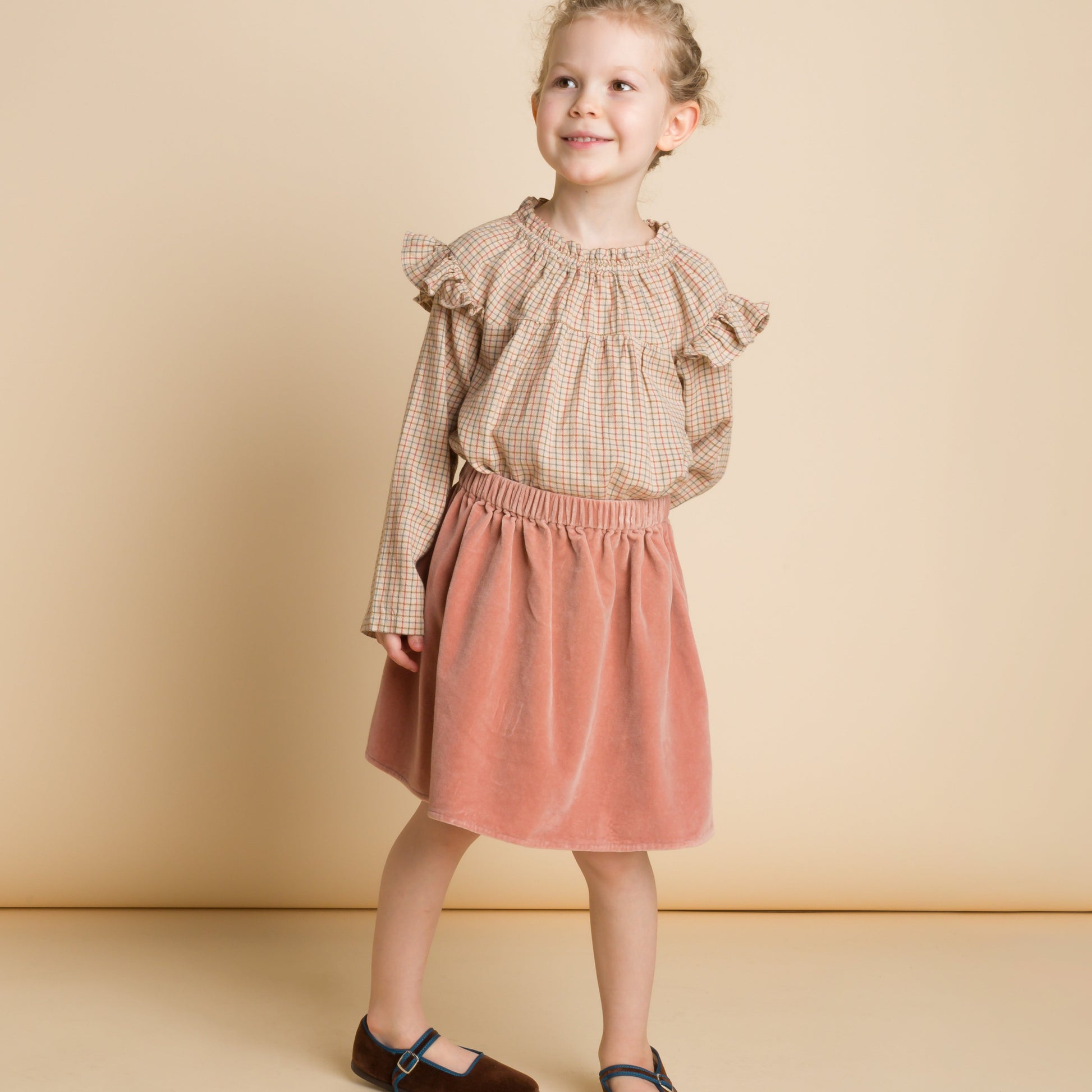For all your littles that love to twirl and mix and match their outfits, the Coral skirt is a Fall/ Winter must! Made with 100% cotton velvet that is soft and luxurious, it features a fully elasticated waist and a wide skirt for a comfortable and bouncy turn. Ages: 2 years to 12 years.