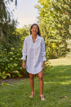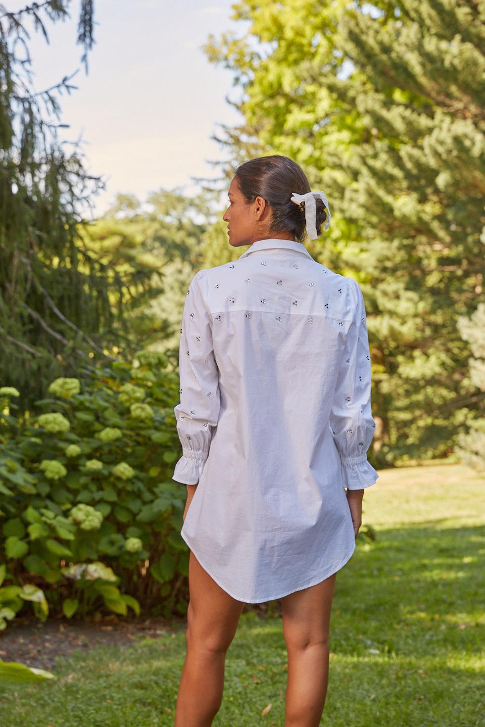 This Gretchen Dress is much more than a basic shirt dress - it's an elevated essential! It has a ruffle detail at the cuff, and is embellished for a look that's sure to turn heads. Plus, its curved hem adds a stylish twist to your everyday look. Dress up your style, with Gretchen!