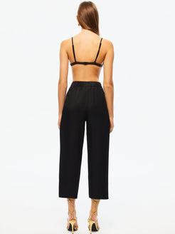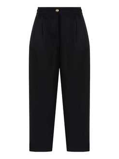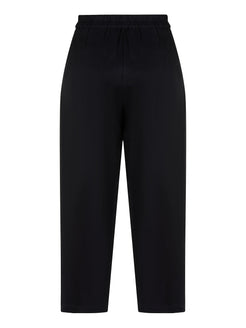Elastic and high waist, zipper and snap closure, side pockets, ankle length trousers