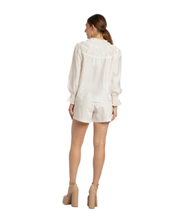Meet Jane, your new go-to top for wearing with your favorite mini skirt or pairing with jeans for a more casual outfit. Beautiful, feminine details designed to elevate your look, like smocking at the neck and wrist, and flounce cuff.