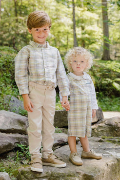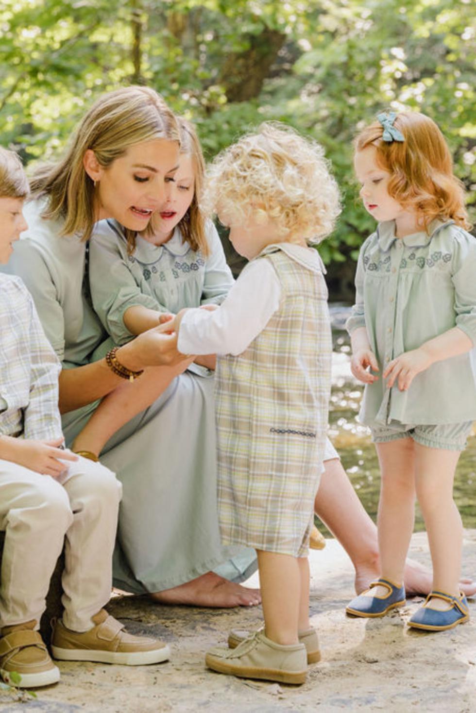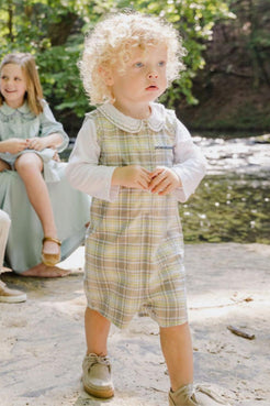 The Johnny Romper is a perennial best-seller that can be layered or worn alone. Embroidery details offer a cute detail that is not too fancy for our boys but offer an extra special bit of personality. Button-covered snaps at the front and both shoulders make this precious romper easy to get in and out of—fast. Big brother will look equally adorable in our coordinating Grayson Button down.