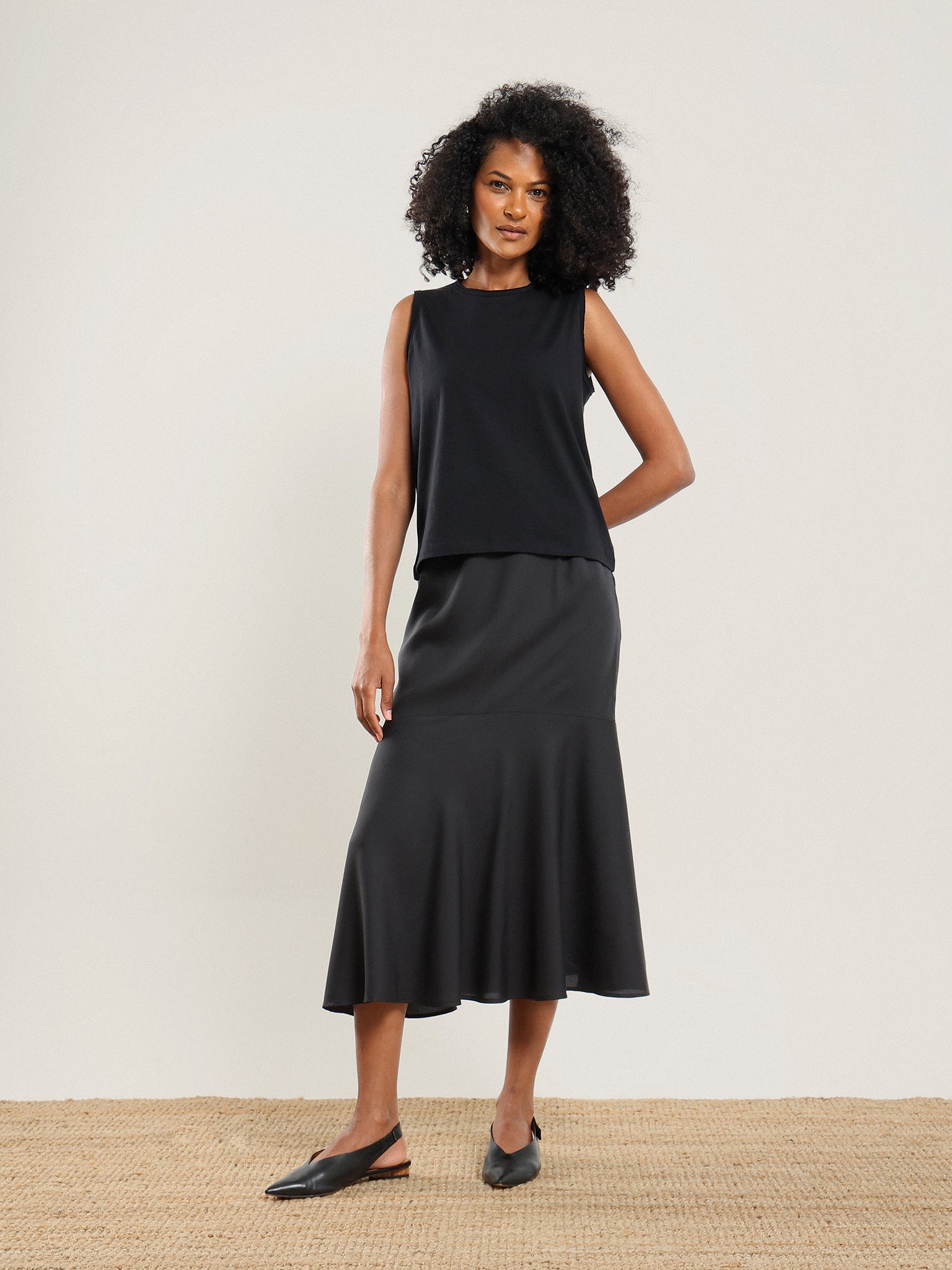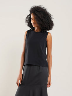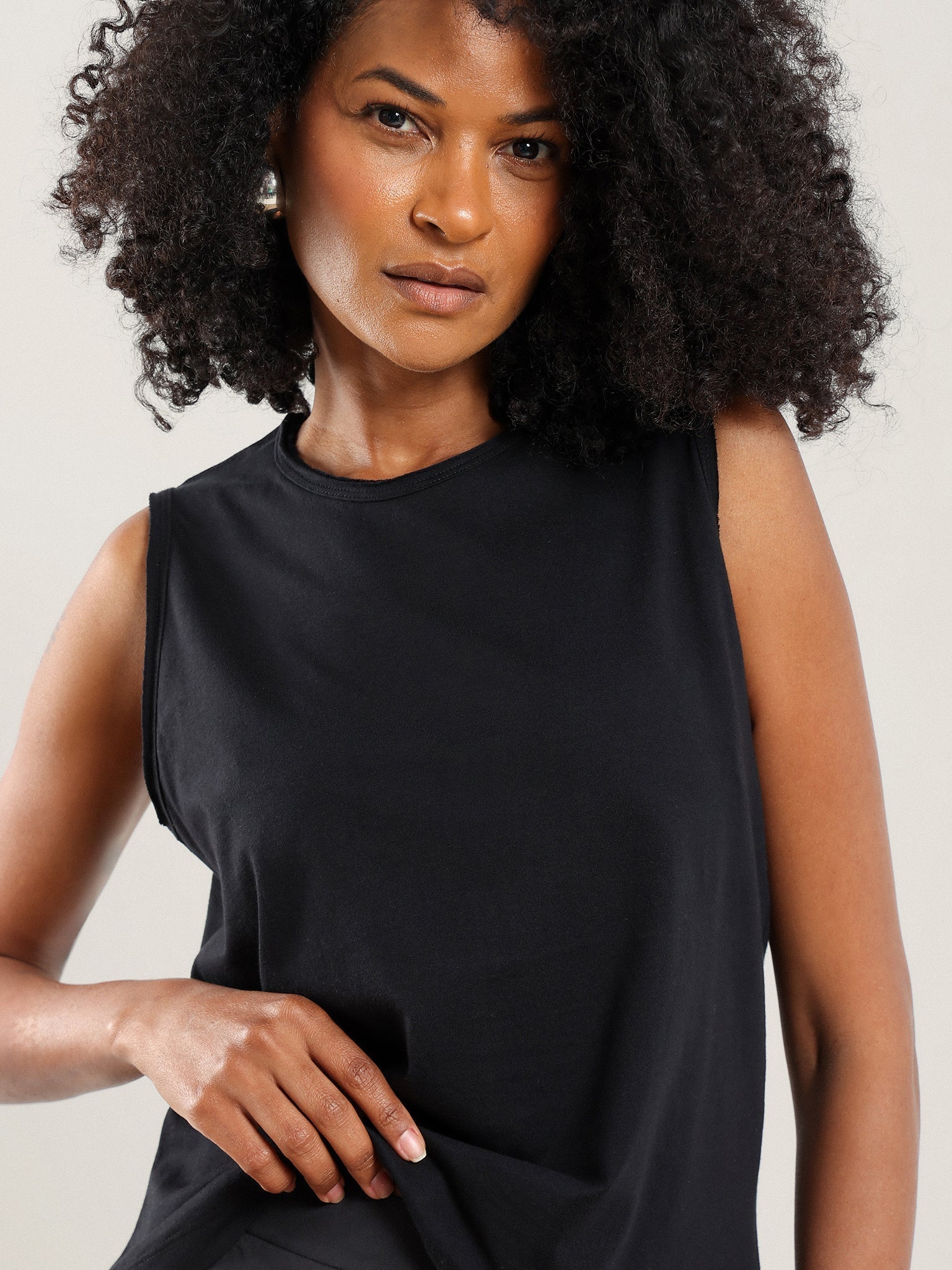 The timeless tank that checks all the boxes. Exposed raw edge details on neckline and armholes compliment a sleek center-back seam.
