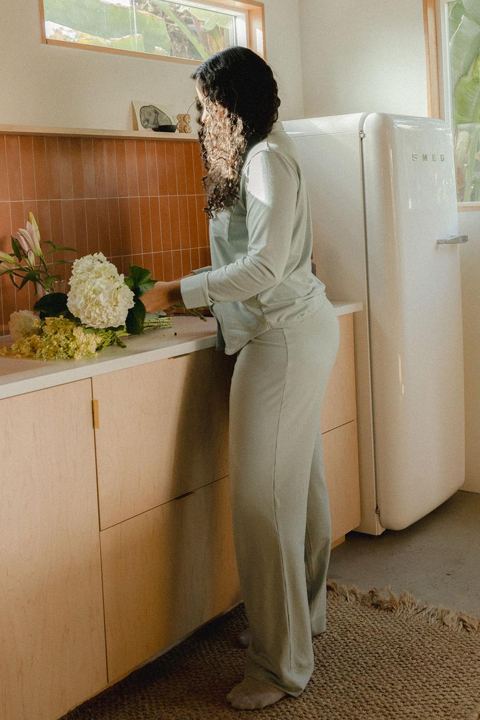 Our debut pyjama pant that combines an irresistibly soft feel with everyday comfort. Designed with a relaxed, straight-leg fit, an adjustable elastic waistband with a drawstring tie, and a cuffed hem detail, it’s the perfect blend of style and ease. Whether you’re lounging at home or winding down for the night, the Kenny PJ Pant is crafted to keep you feeling at ease, all night and beyond. Size small inseam measures 30".