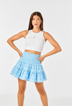 Our best-selling Kylie Skirt is back this spring in a new 100% cotton custom embroidered eyelet with a scalloped hem....