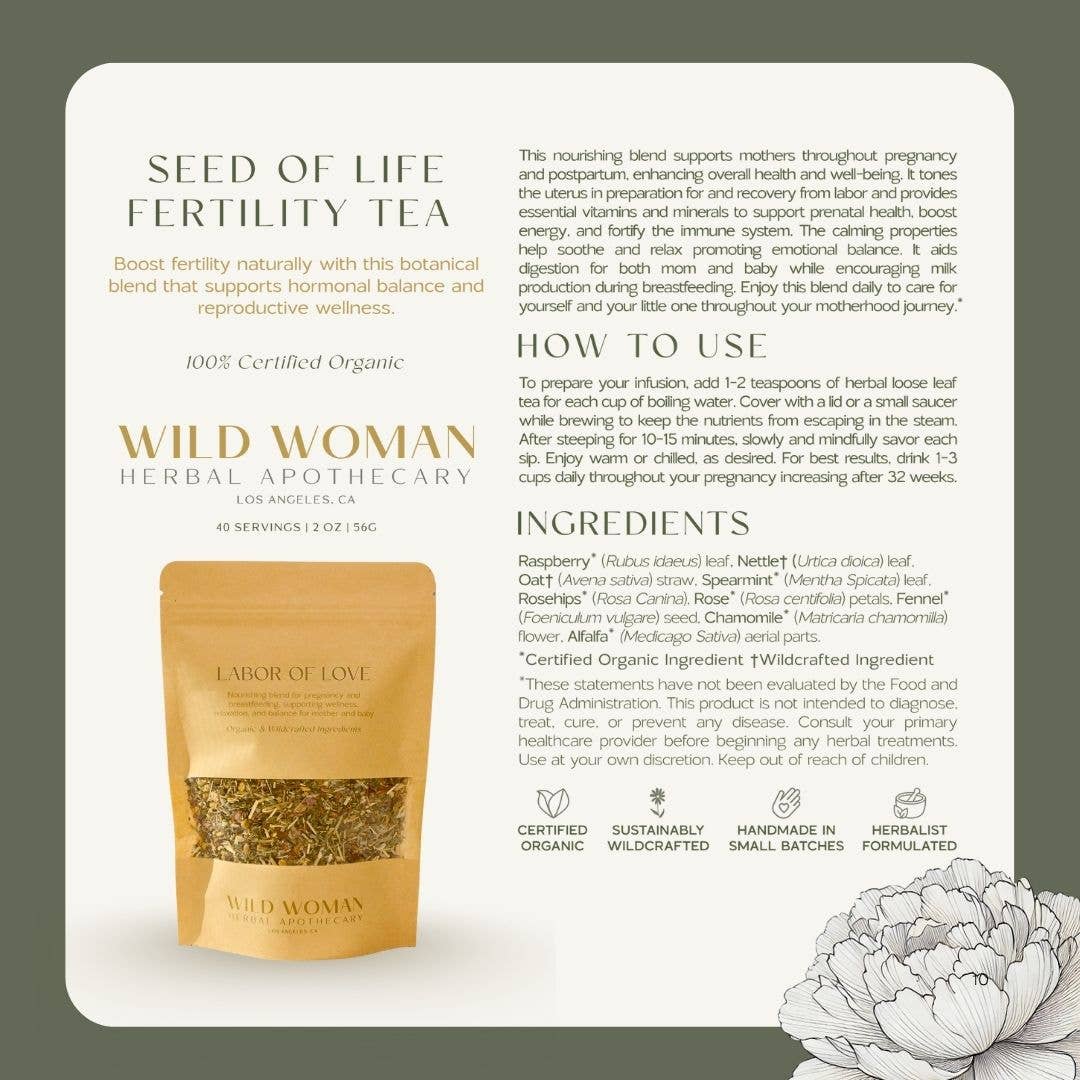 Our Labor of Love Tea is a nurturing herbal infusion designed to support mothers through every stage of pregnancy and breastfeeding. Crafted with care, each sip delivers gentle, grounding support to your body and spirit—helping tone the uterus, boost energy, aid digestion, and fortify the immune system. This mineral-rich blend promotes emotional balance while encouraging milk production, offering a moment of calm connection for both mother and baby.