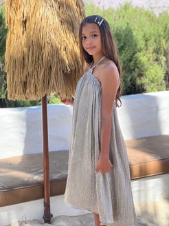 Our Festive Halter shimmier than the shimmiest, shinier than the shiniest. This dress arrived just in time to join all the celebrations with you. This soft and flowy dress, makes it the perfect play and dress up dress with all the comfort and freedom.