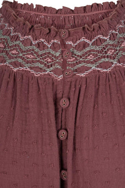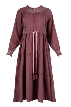 This is the dress that trumps everything else in your wardrobe by being wildly more comfortable, much easier to throw on, and infinitely more enjoyable to wear. Based on our favorite Willow Top, the Lucy Dress features a sophisticated take on traditional smocking, easily worn raglan sleeves, a swingy and full silhouette, and a figure flattering smocked belt for the days you want to dress it up. Made for the season in a Vintage Wine hued swiss dot cotton gauze, you won't find a better dress for day-to-day wear.