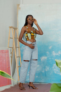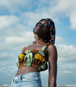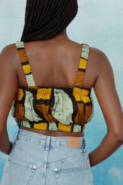 The Lupi Top is a fun and supportive summer crop top. Shirring throughout combined with our bold prints creates a textural statement. Straps and edges of bodice contain 3/4" elastic for ease of wearing.