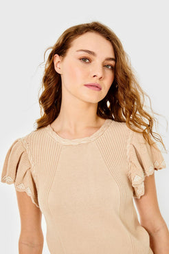 With its exquisite hand-embroidered details, the Madeline sweater will quickly become a closet favorite. With a feminine flutter sleeve and hand-stitched details it pairs well with our skirts or your favorite jeans. Compliments await.
