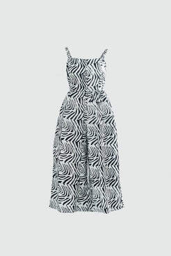 Long Division is a high contrast print, with black wavy lines repeating densely over a white background. Reminiscent of Zebra stripe, or woodgrain patterning.