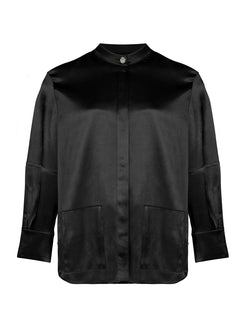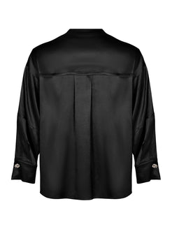 Long-sleeved, front-buttoned, flowing shirt with a grandad collar